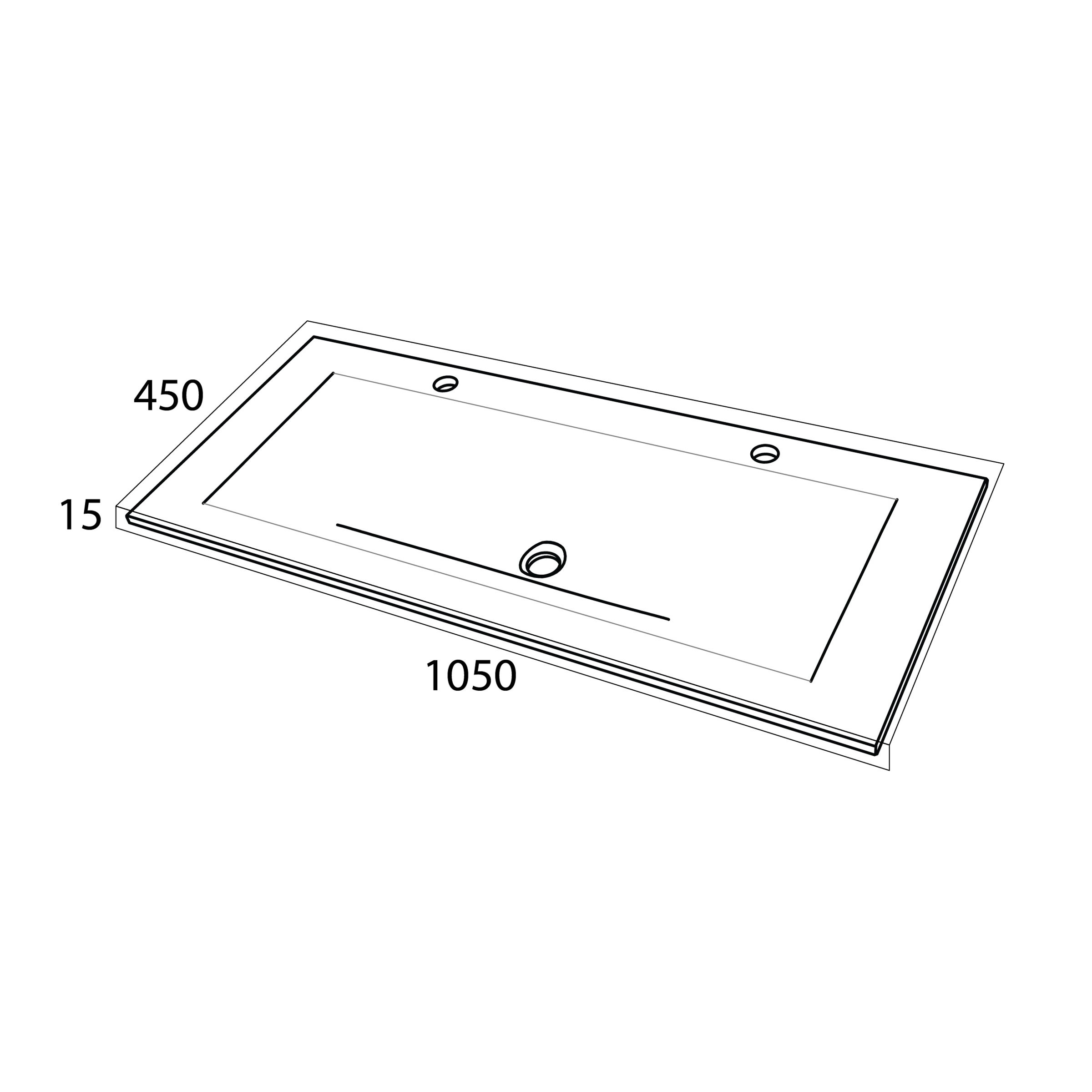 - Tiger Items Lavabo simple 105 cm sans trop-plein et avec 2 trous de robinet blanc brillant