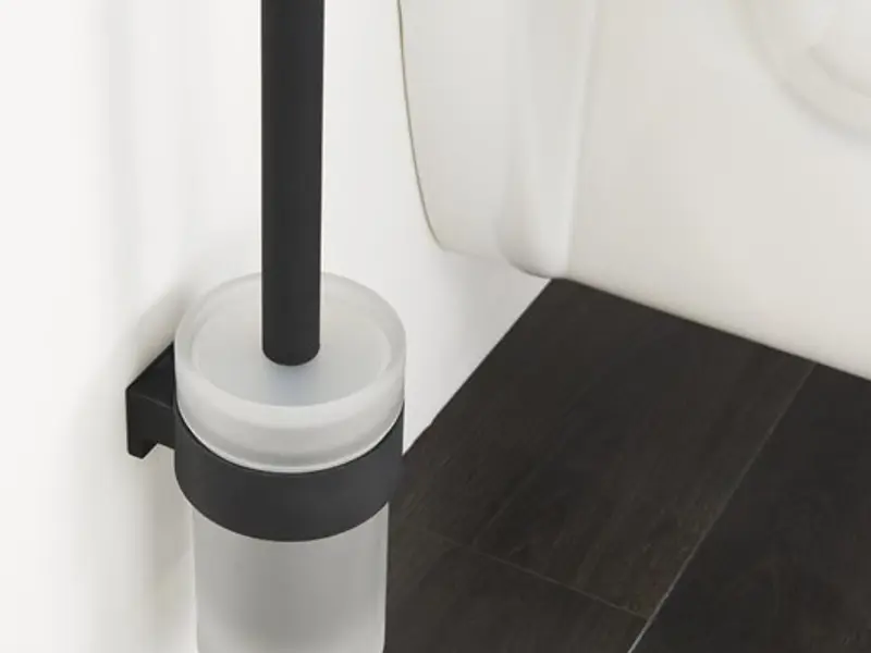 De toiletborstel met houder uit de Tiger Bold serie is uitgevoerd in de kleur mat zwart gecombineerd met mat glas. De toiletborstelhouder is vervaardigd uit hoogwaardige materialen en eenvoudig op de gewenste positie aan de wand te monteren.