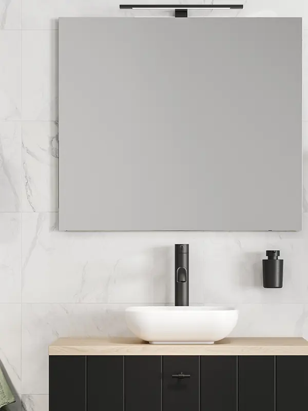 Je kunt de lichtarmaturen (de draagconstructie van het licht) op het glas van de spiegel plaatsen óf op het hout monteren van de (spiegel)kast. Het armatuur is voor beide opties geschikt; ongeacht het meubel kun je altijd een Tiger-ledlamp bevestigen. Dankzij de grote keuze aan stijlen, kleuren en afmetingen bieden we voor iedere badkamer passende verlichting.